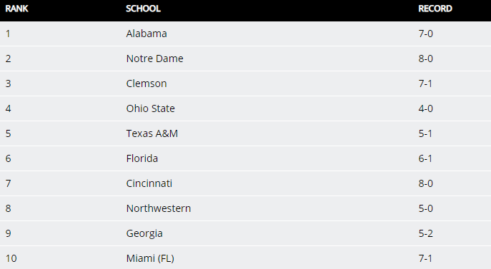 Let’s take a look at who’s ahead and how the door can be opened for Cincy. It starts in the Southeastern Conference, where three teams currently rank ahead of them. Alabama, Texas A&M and Florida all stand in the way.
